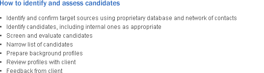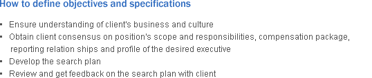 ProHR consultants approach each executive search assignment with a consistent, time-tested, nine--step process, derived from more than 25 years of experience recruiting senior--level candidates at field manufacturing companies.